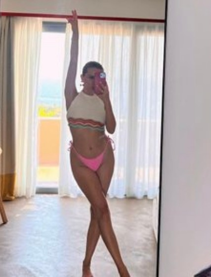 Ajo së fundi është shfaqur me rroba banjo, duke treguar linjat e saj perfekte nga pushimet në jug të Shqipërisë.