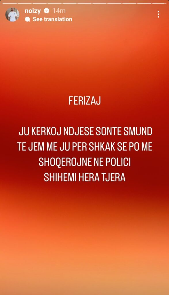 “Ferzaj, ju kërkoj ndjesë sonte s’mund të jem me ju pasi po më shoqërojnë në polici! Shihemi herë tjetër”, ka shkruar ai, në një postim që tashmë është fshirë.