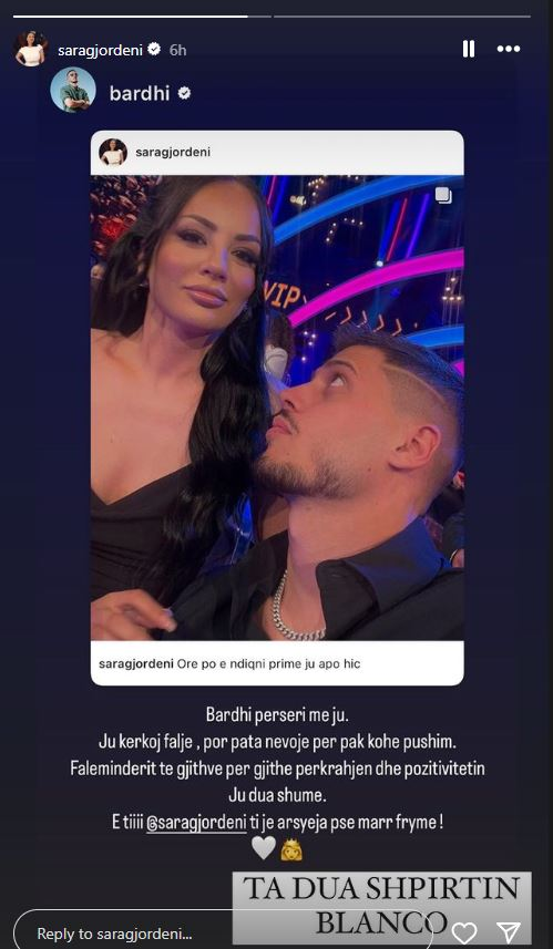 Ndërsa Sara ka shpërndarë postimin në Instagram, ku shkruan: “Ta dua shpirtin Bardhi”.