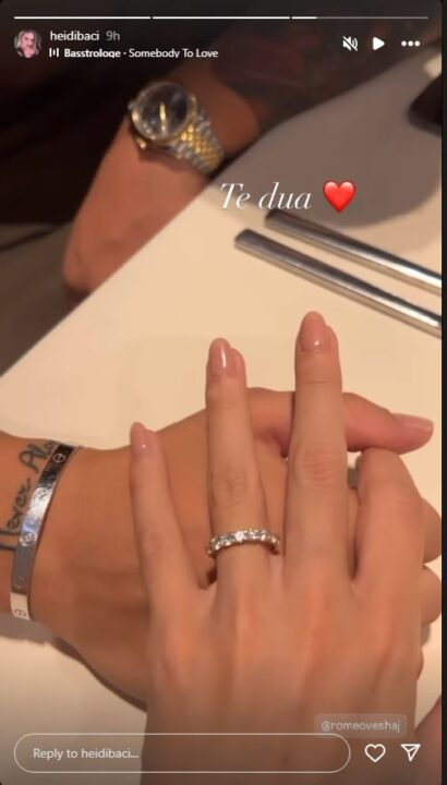 Por përveç kësaj, duket se ai ka zgjedhur dhe dhuratën më të bukur për përvjetorin e partneres së tij. Mes postimeve të ditëlindjes, Heidi u shfaq me një unazë në duar ndërsa etiketonte aktorin në InstaStory dhe shkruante: “Të dua”.