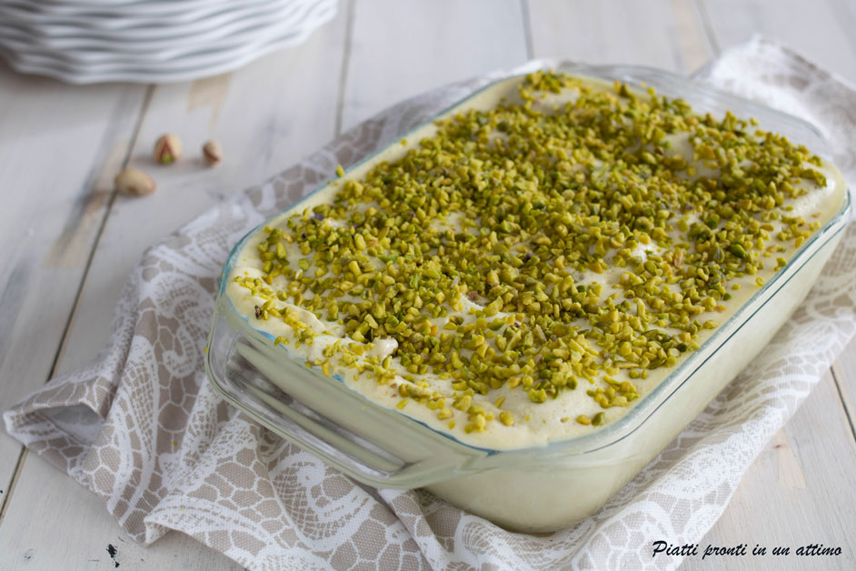 Tiramisu me pistacchio ndryshon nga versioni klasik i tiramisu, pasi përbërjes të mbushjes i shtohet krem pistacchio. Për dashamirësit e kësaj shije kjo ëmbëlsirë është kryevepër.