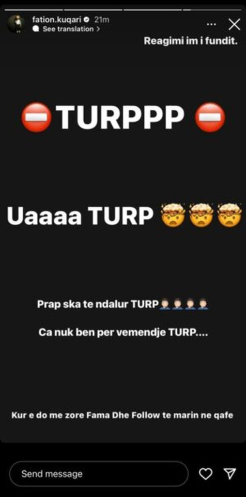 Lidhur me këtë situatë një reagim ka ardhur edhe nga ish-banori, Fatjon Kuqari i cili “shpërthen” ndaj Sarës duke e quajtur “paturpësi” për vëmendje çdo reagim që po bën.