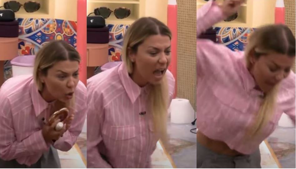 Rike Roçi duke bërtitur: Jo se nuk është ashtu, sepse mendoni që jam e influencuar edhe nuk jam e influencuar, më çmendët, më çmendët. (Merr dhe hedh kutitë e make up me forcë në tokë).